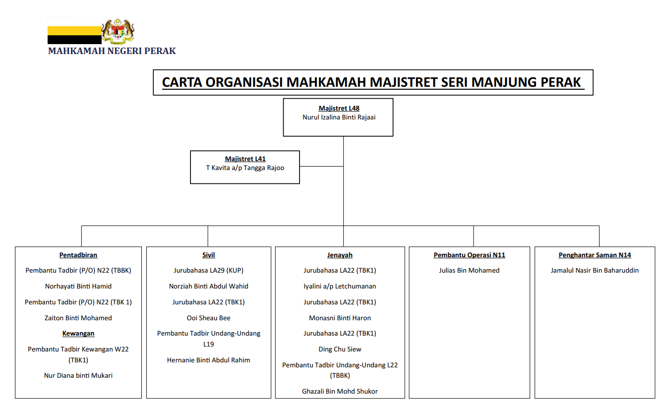 - Pengurusan sistem fail (fail pentadbiran, kewangan, sivil, jenayah) dan pengurusan surat menyurat (penerimaan surat, pengedaran surat,pengeposan surat)